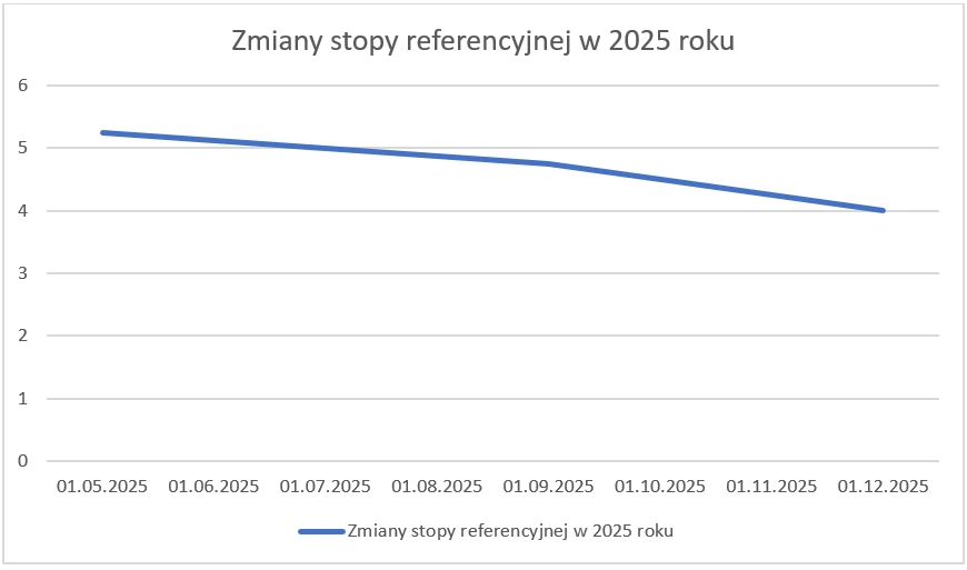 Aktualne prognozy wskazują na utrzymanie stopy referencyjnej na poziomie około 4,00% na początku 2026 r., z potencjałem do kolejnych obniżek w miarę stabilizacji inflacji blisko celu NBP.